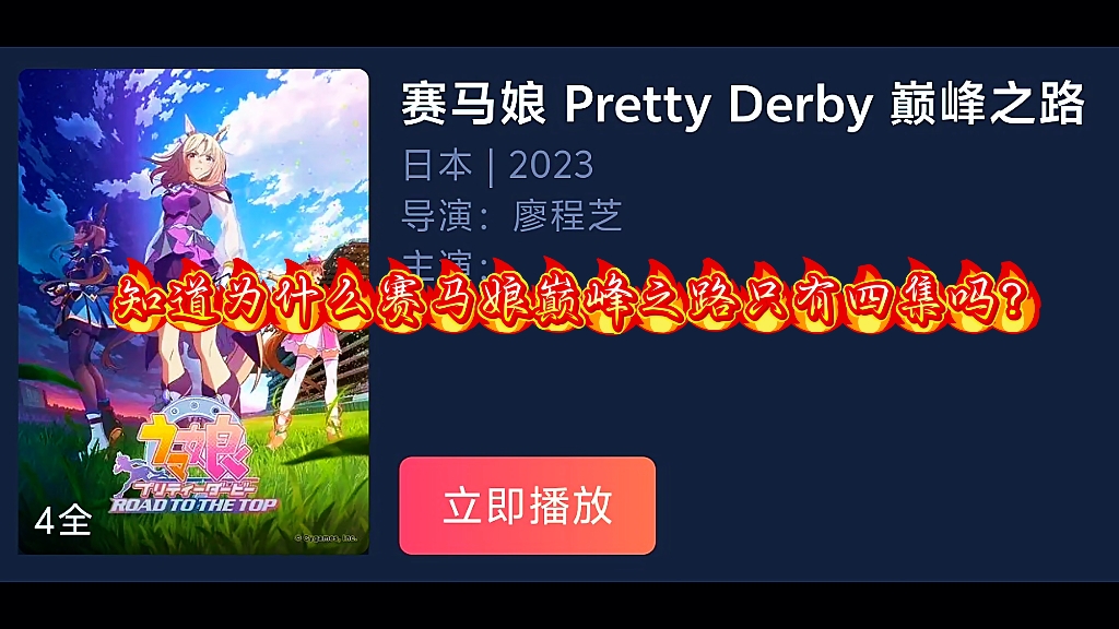 知道为什么赛马娘巅峰之路只有四集吗?因为再往下拍,主角就不是成田路了
