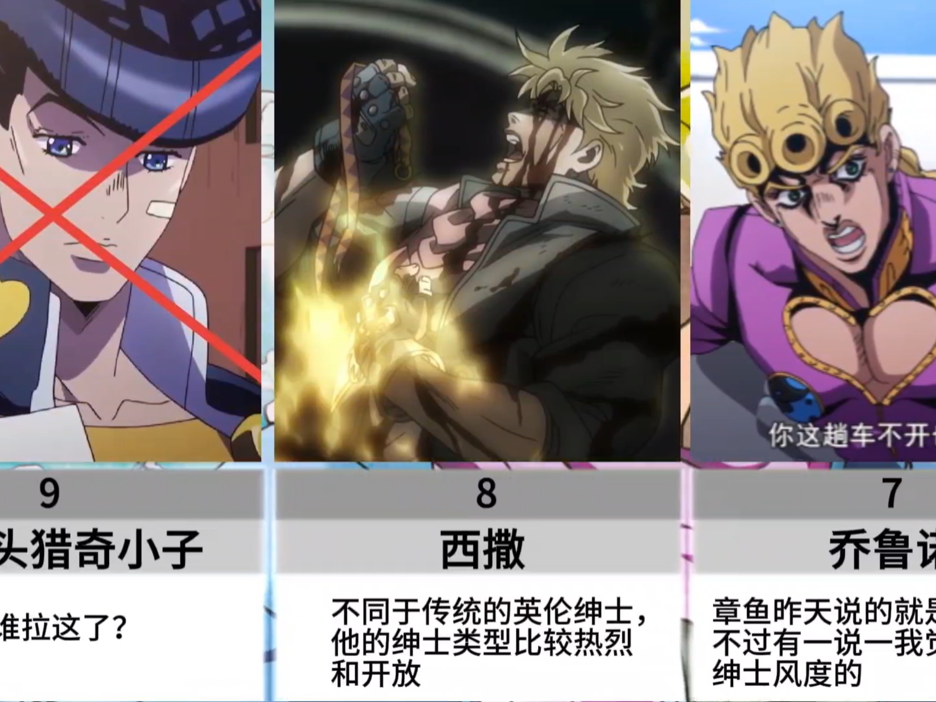 jojo男性角色颜值排名: