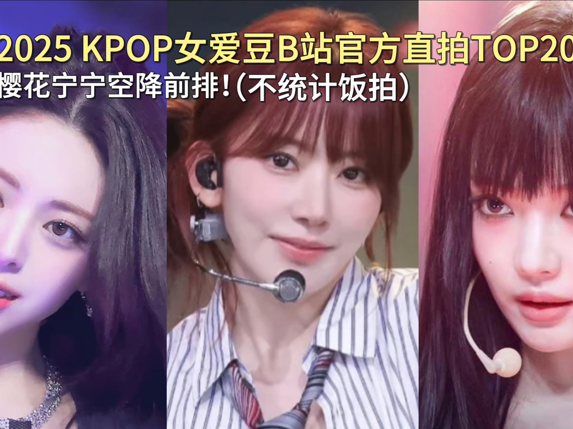 2025 KPOP 女爱豆B站官方直拍top20!宁宁小樱花空降前排!樱花唯一百万领跑中!宁宁上榜最多!