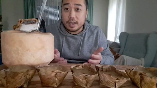 ASMR Chinese New Year 's Rice Cake 🍡Kanom Keng 🍡 + Young Coconut - Eating Sounds