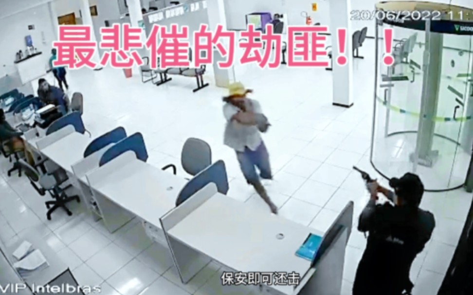 最悲催的劫匪,被保安一枪命中,国外监控下的一幕