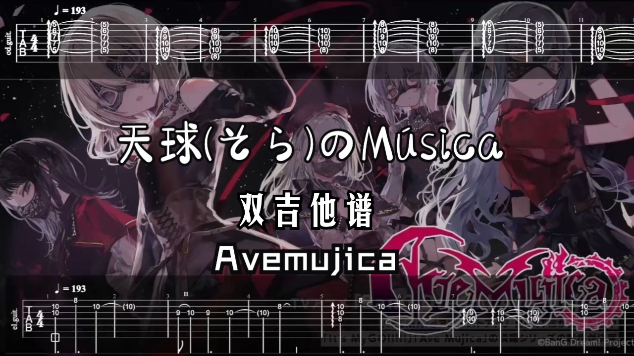 【Ave Mujica | 吉他扒谱】「天球(そら)のMúsica(Musica Caelestis)」