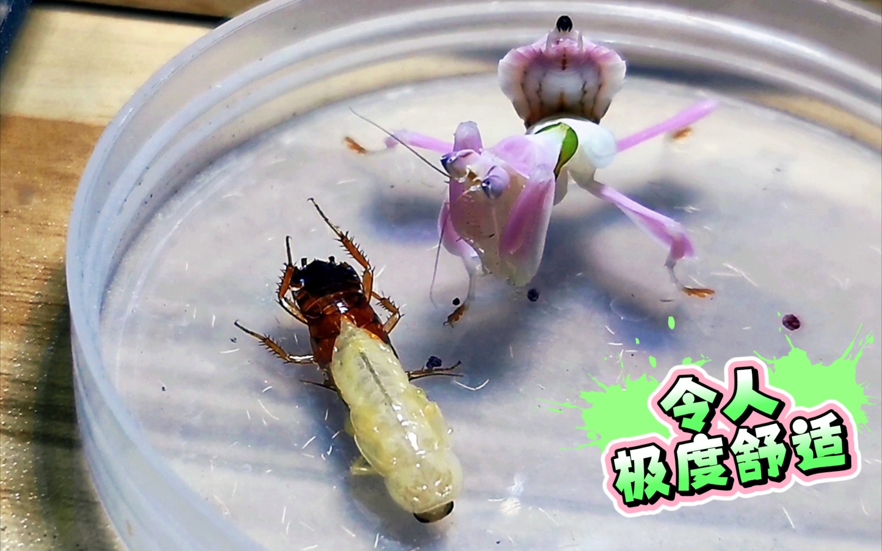 蟑螂正在蜕皮,直接丢给螳螂!爽死了,舒服!