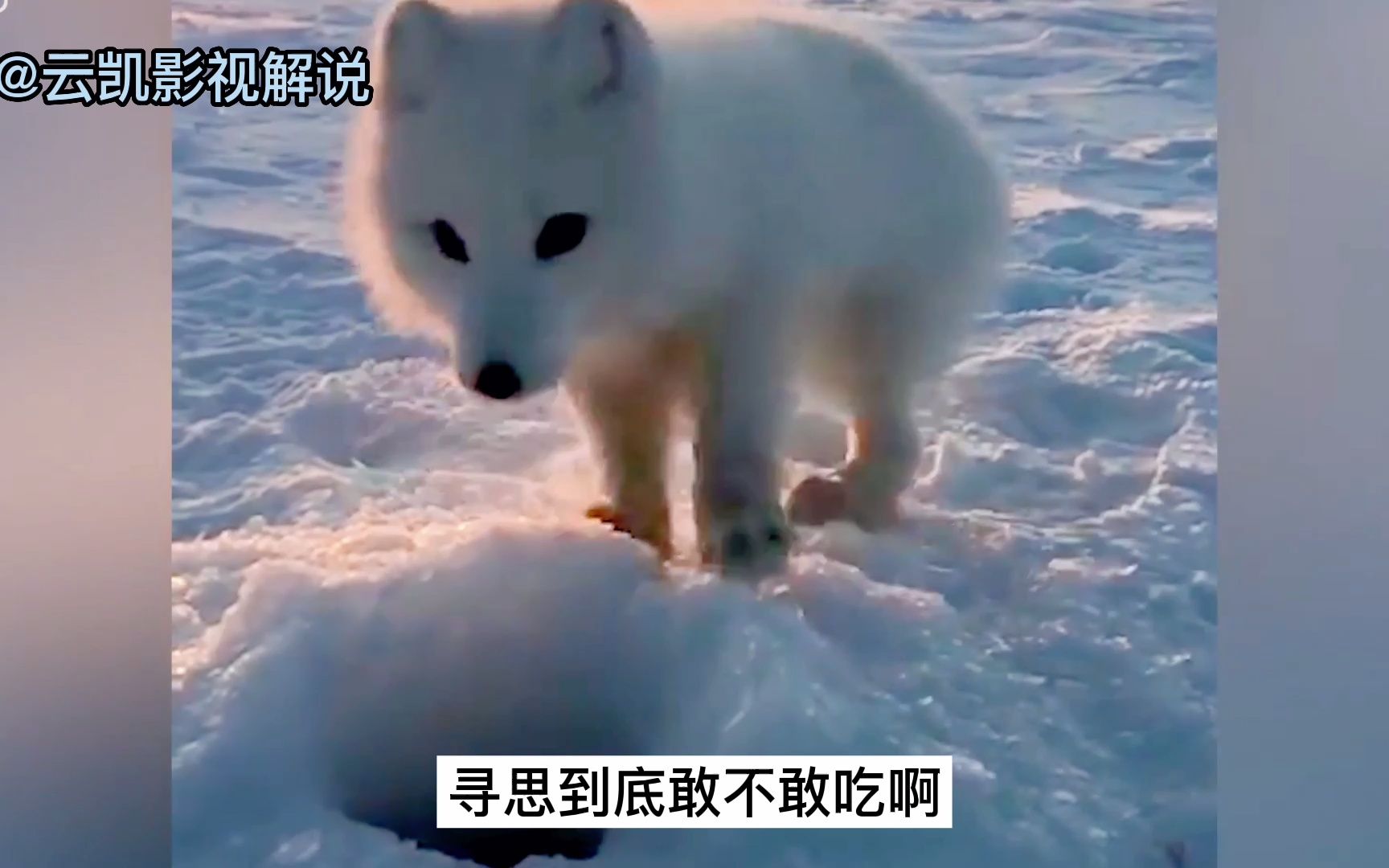 小雪狐想偷吃大叔刚钓上来的小鱼,鬼鬼祟祟的样子实在太可爱了!