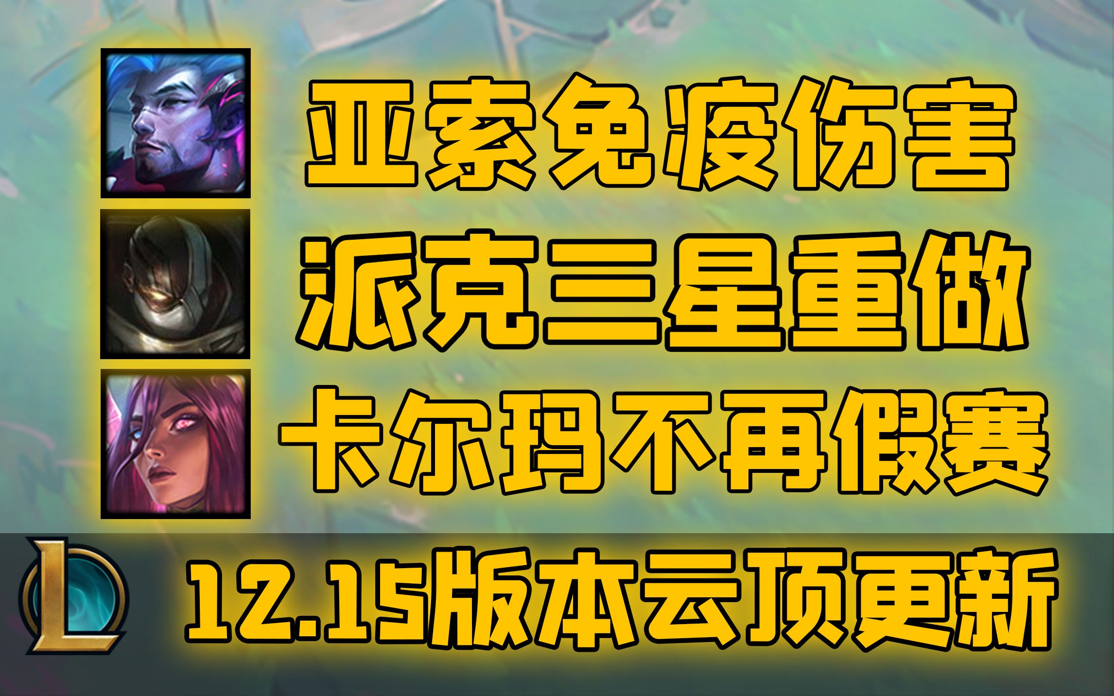 亚索获得免疫伤害效果!派克三星技能重做!12.15云顶版本更新!