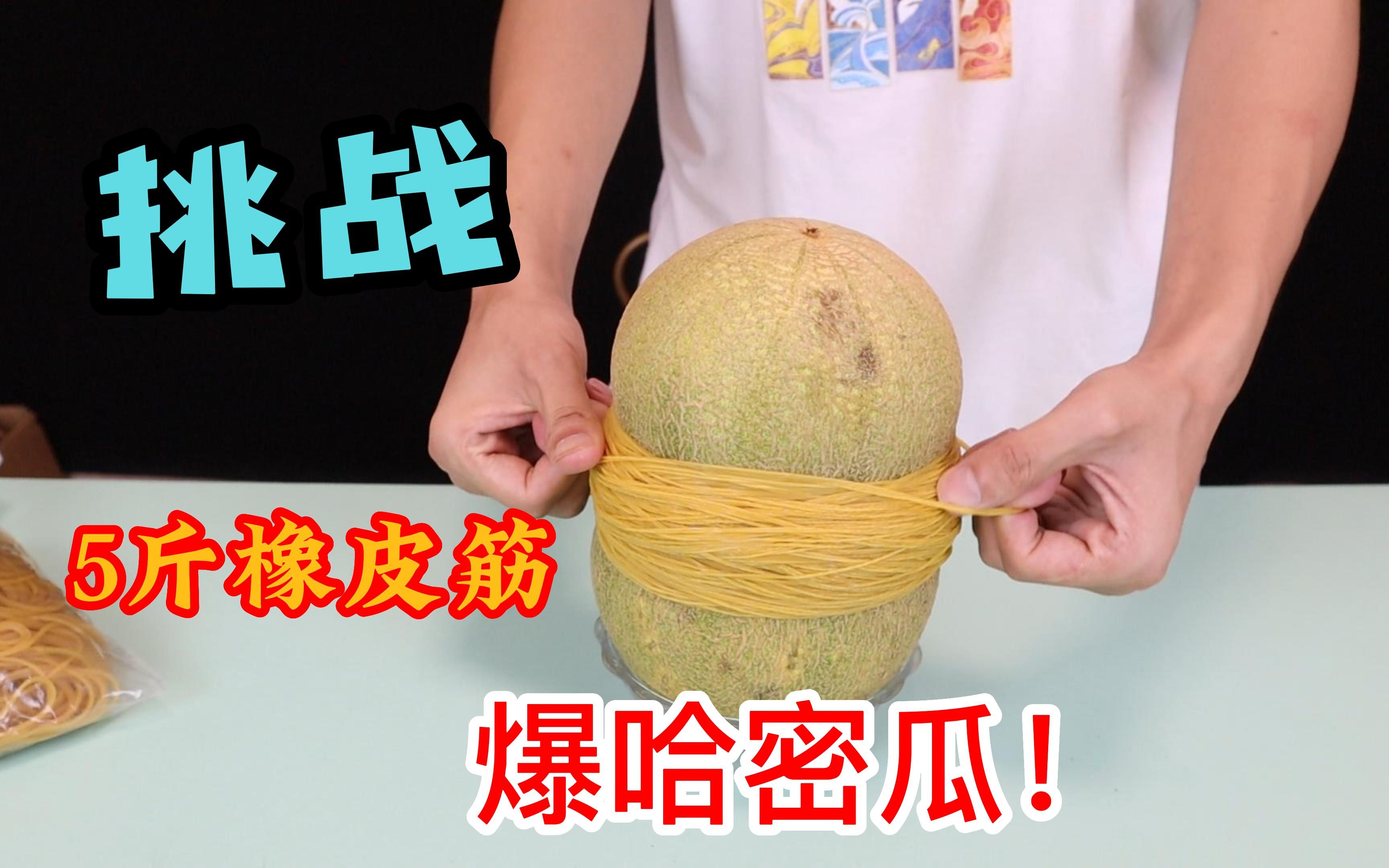 挑战用5斤橡皮筋把哈密瓜勒爆,爆炸的那一刻我直接呆住了