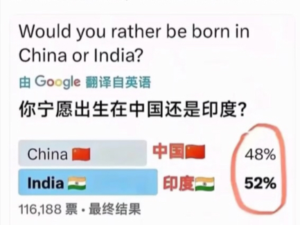 你是愿意出生在中国还是出生在印度?