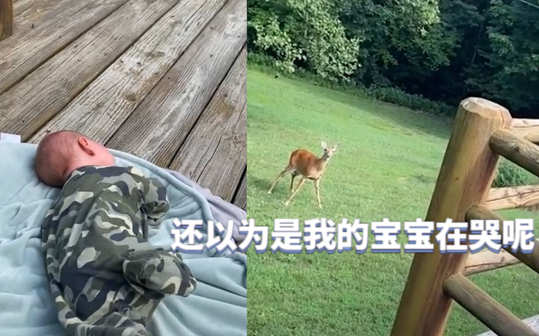 婴儿户外乘凉大声哭泣,鹿妈妈闻声而来:是不是我的宝宝?