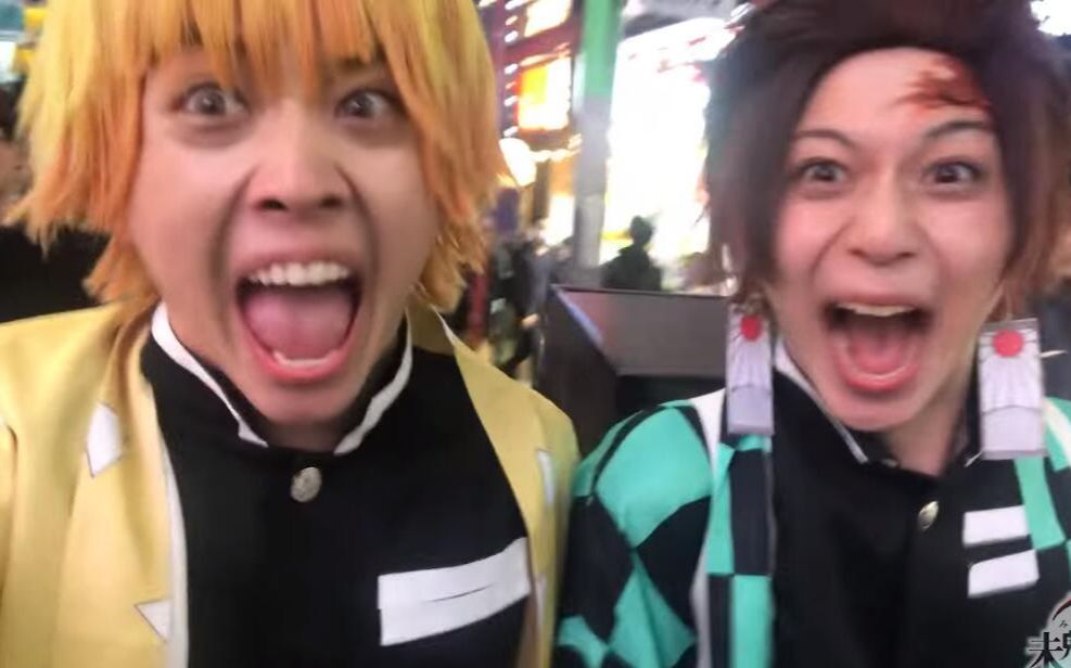 可爱cos炭治郎和善逸的步行街之旅
