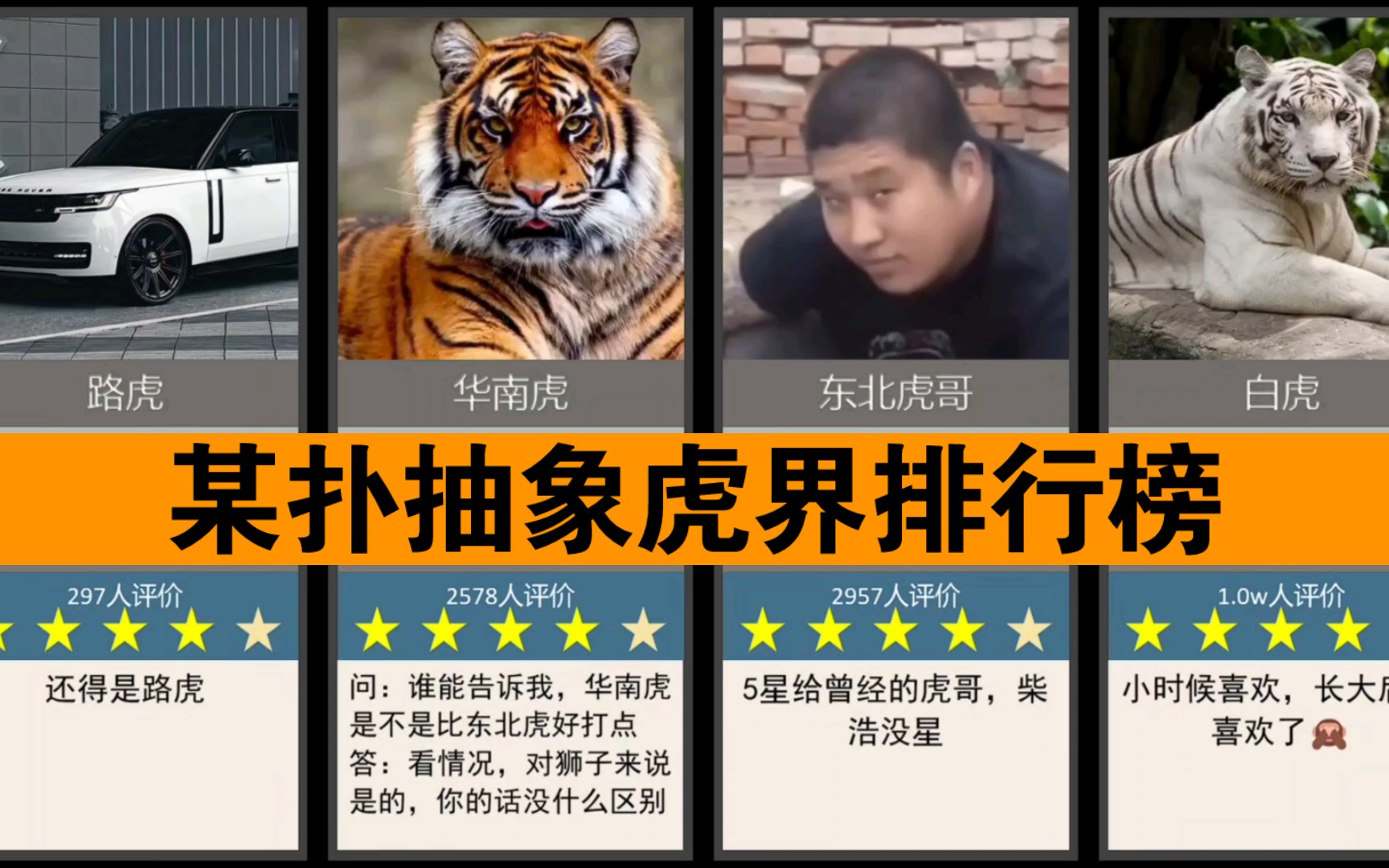 (某扑难绷评论)抽象虎界评分排行榜(选评论数前50个)看看抽象虎第一名会花落谁家?