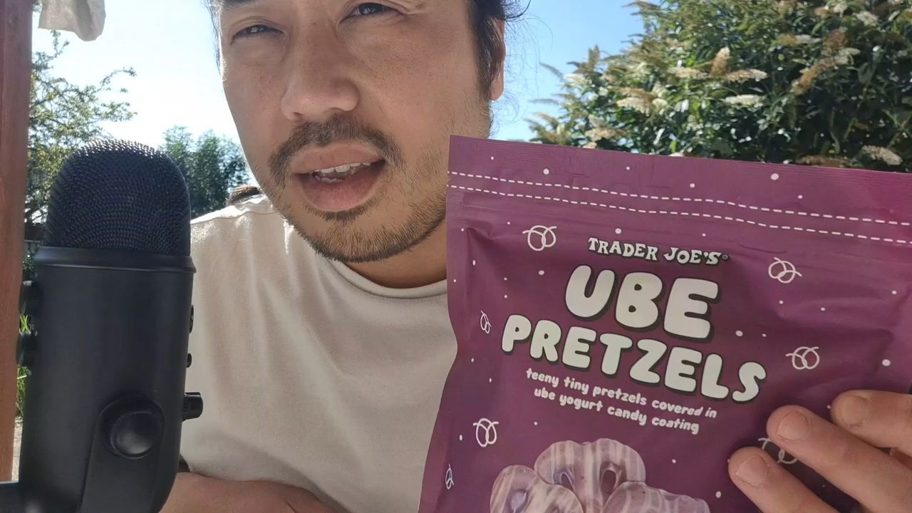 ASMR EATING SOUNDS - UBE PRETZELS + WATER SOUNDS