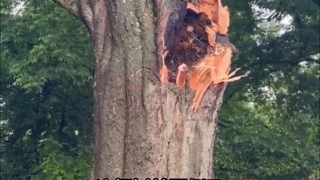 国外工人锯开一棵树,没想到会流出这么多水...网友猜测是树木上端腐烂后积聚的雨水