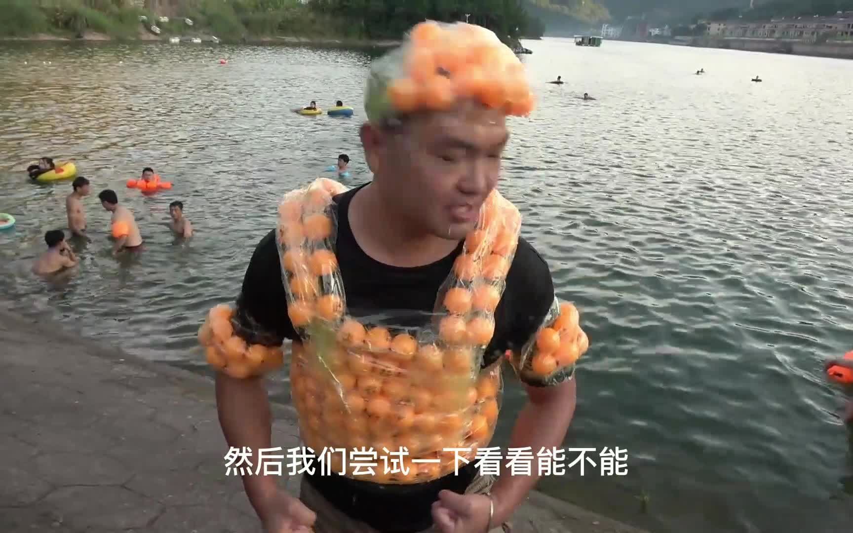 挑战用500个乒乓球绑在身上游泳,刚下水就有效果,这也太好玩了