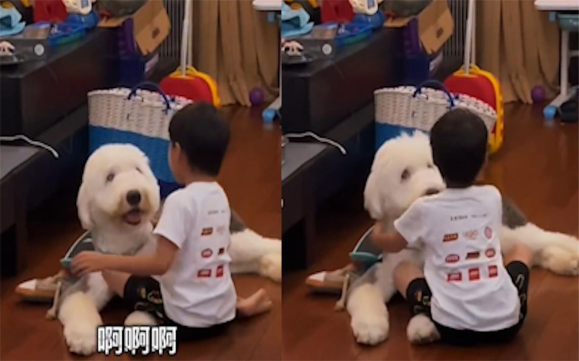 萌娃被妈妈凶后找狗狗,抱着它大哭发泄求安慰,狗狗表情网友笑喷