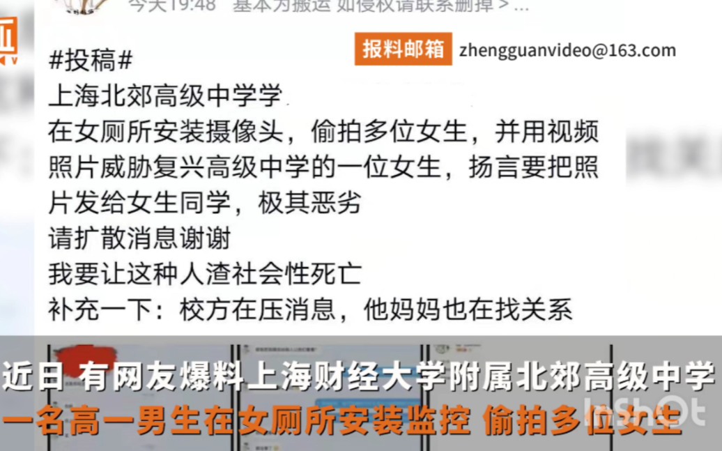 高中男生在厕所安监控威胁女生 男生家长:孩子已经知道错将休学