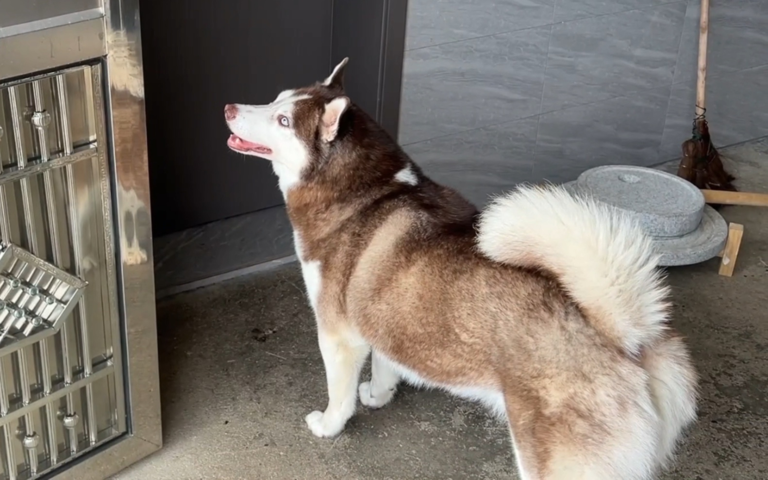 “老虎”旁边有一盆肉,边牧VS二哈,谁敢去吃掉呢?