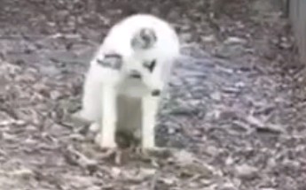一只进入村庄的北极熊受到俄罗斯人民的热烈欢迎