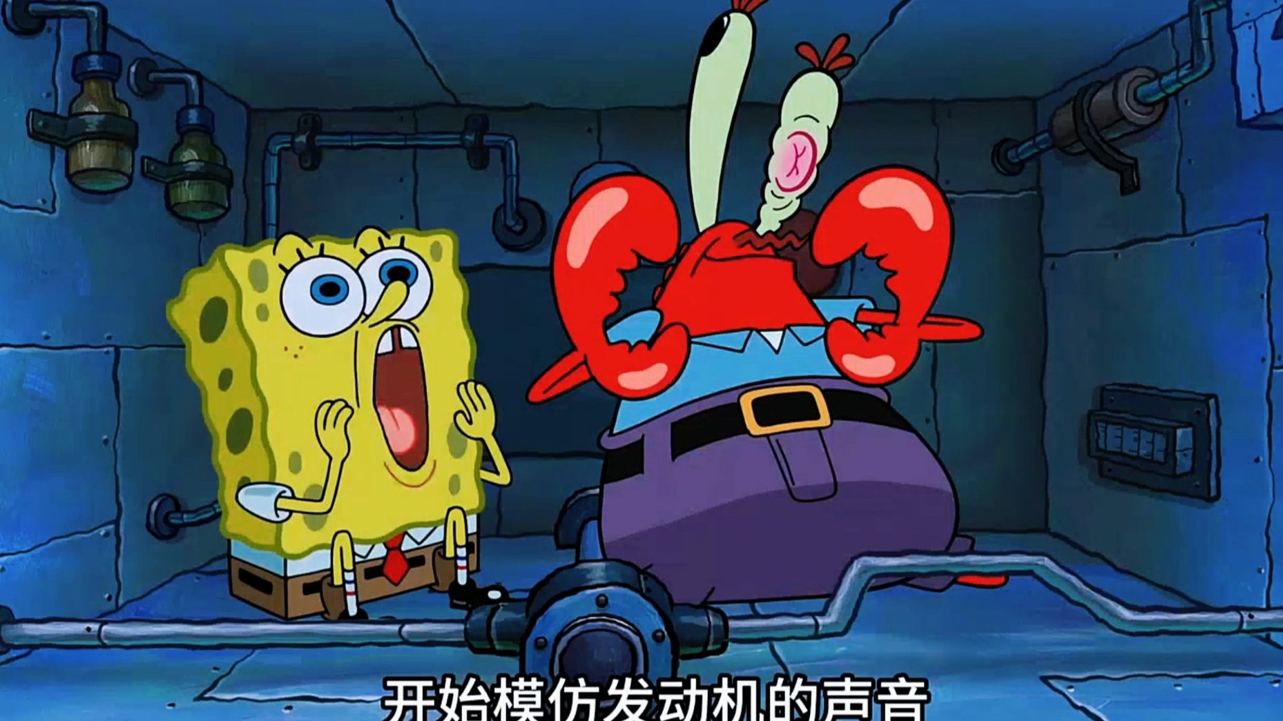 为了省钱,蟹老板自己跳进汽车机舱内,充当起了发动机