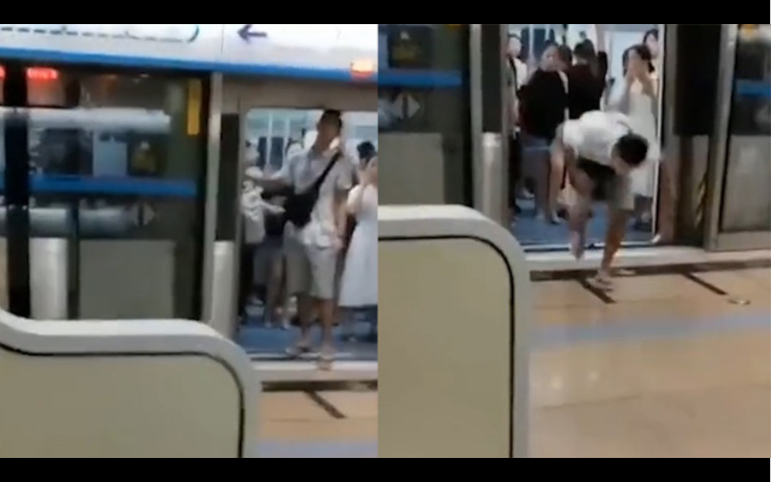 外籍男子故意阻挡地铁关门,黑衣女孩霸气一脚将其踹飞:我不惯你!