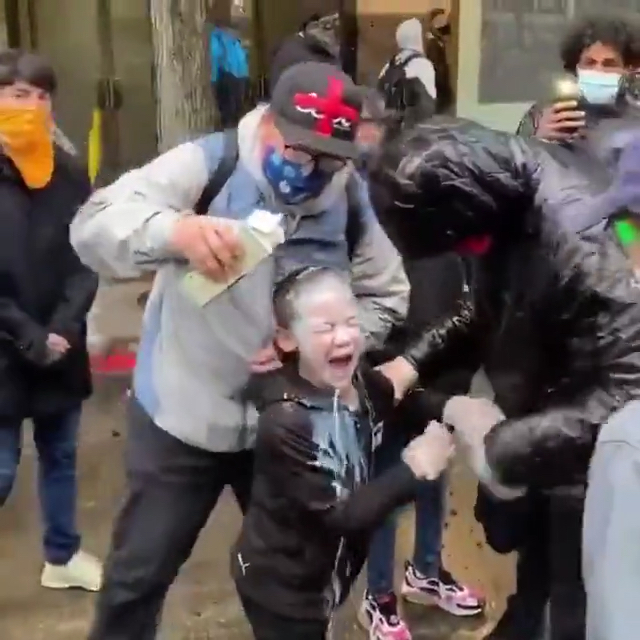 一名可怜的小女孩被美警喷了胡椒粉,大哭不止