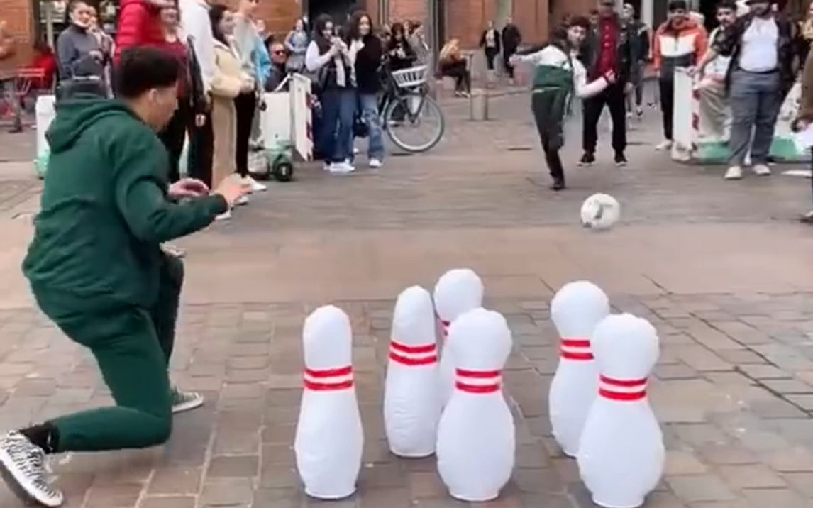 走在路上有人找你打保龄球怎么办?先踢一脚再说!