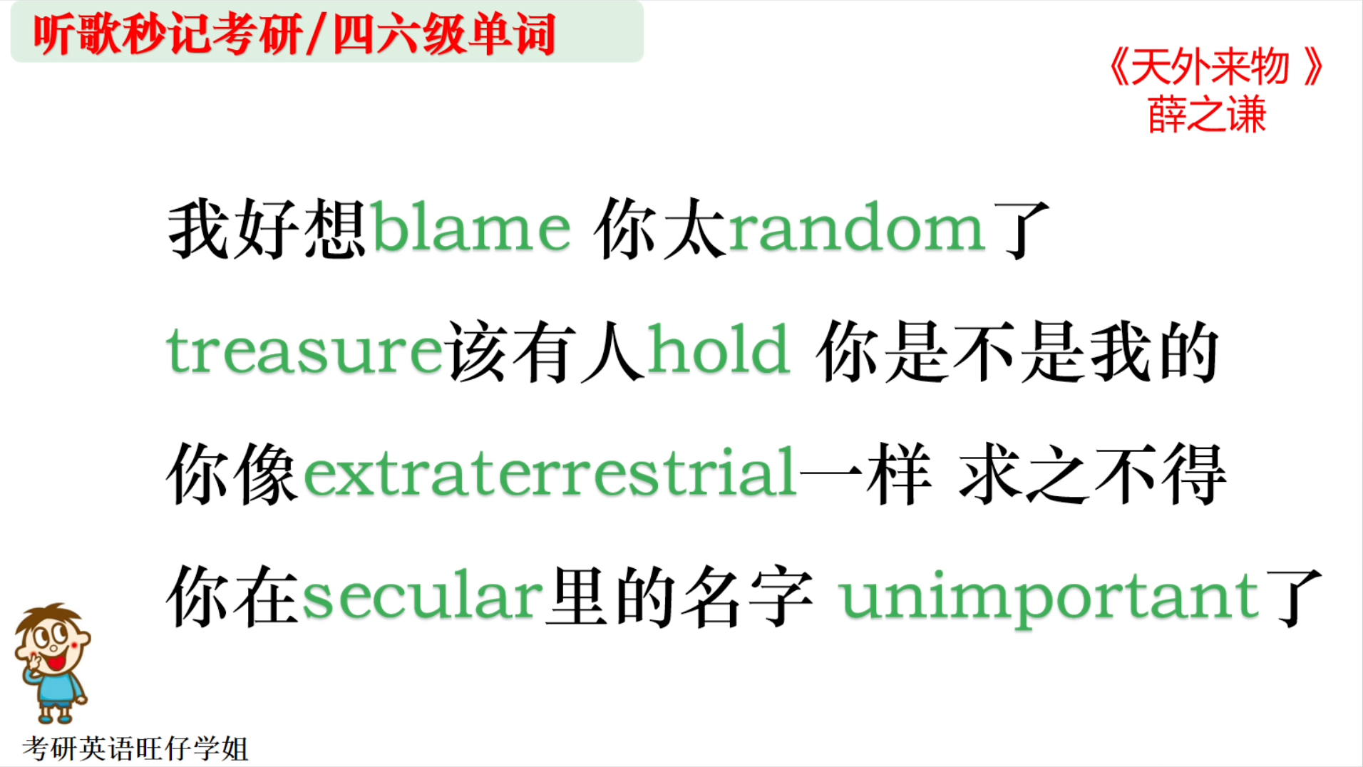 听歌记单词54 天外来物。薛之谦
