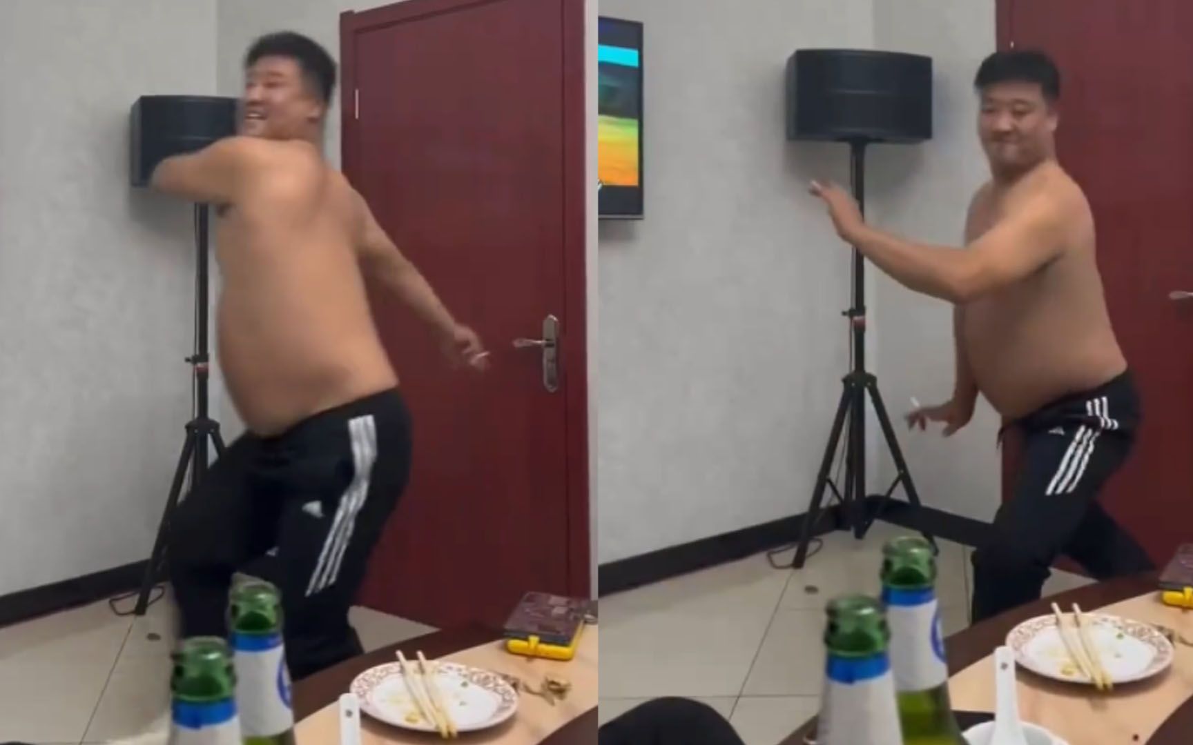 220斤男子酒后跳舞惊艳全场,网友:身似烤鸭,神似鸿雁