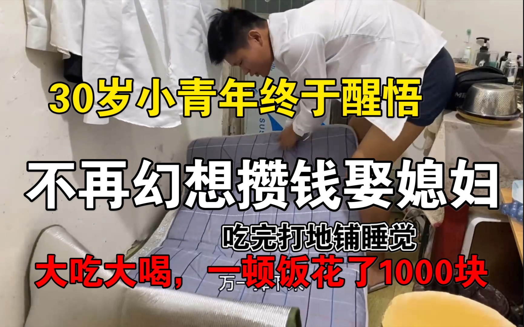 30岁高中毕业生终于觉悟,不再幻想攒钱娶媳妇,大吃大喝,一顿饭花了一千块,吃完打地铺睡觉。