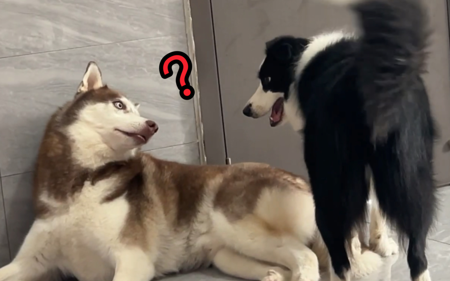 “老虎”旁边有一盆肉,边牧VS二哈,谁敢去吃掉呢?