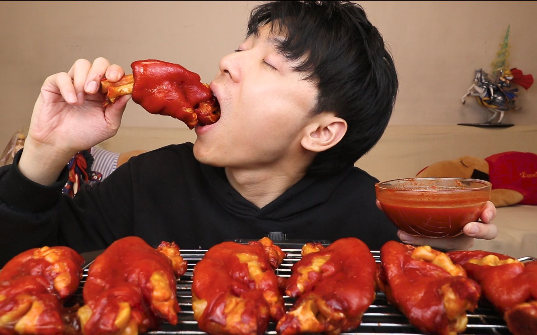 吃上瘾的韩式辣酱烤猪蹄,欧巴一大口吃下去,实在是太香了!
