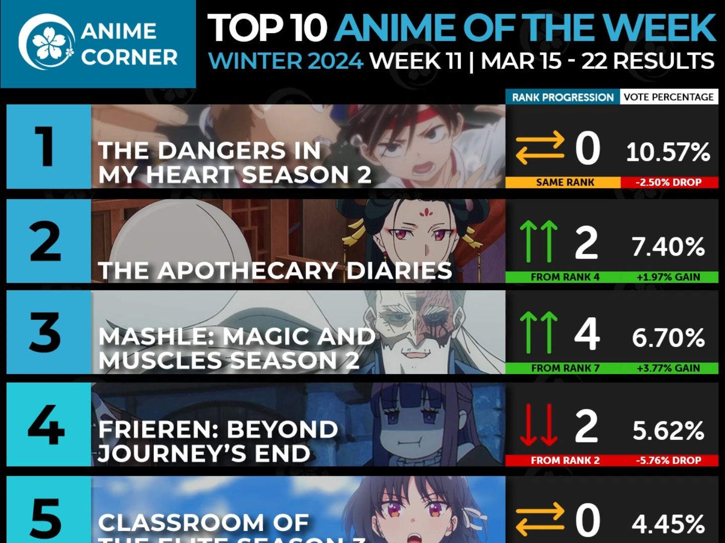 【39】Anime Corner 2024一月新番week11排行 心危连续十一周霸榜!!!
