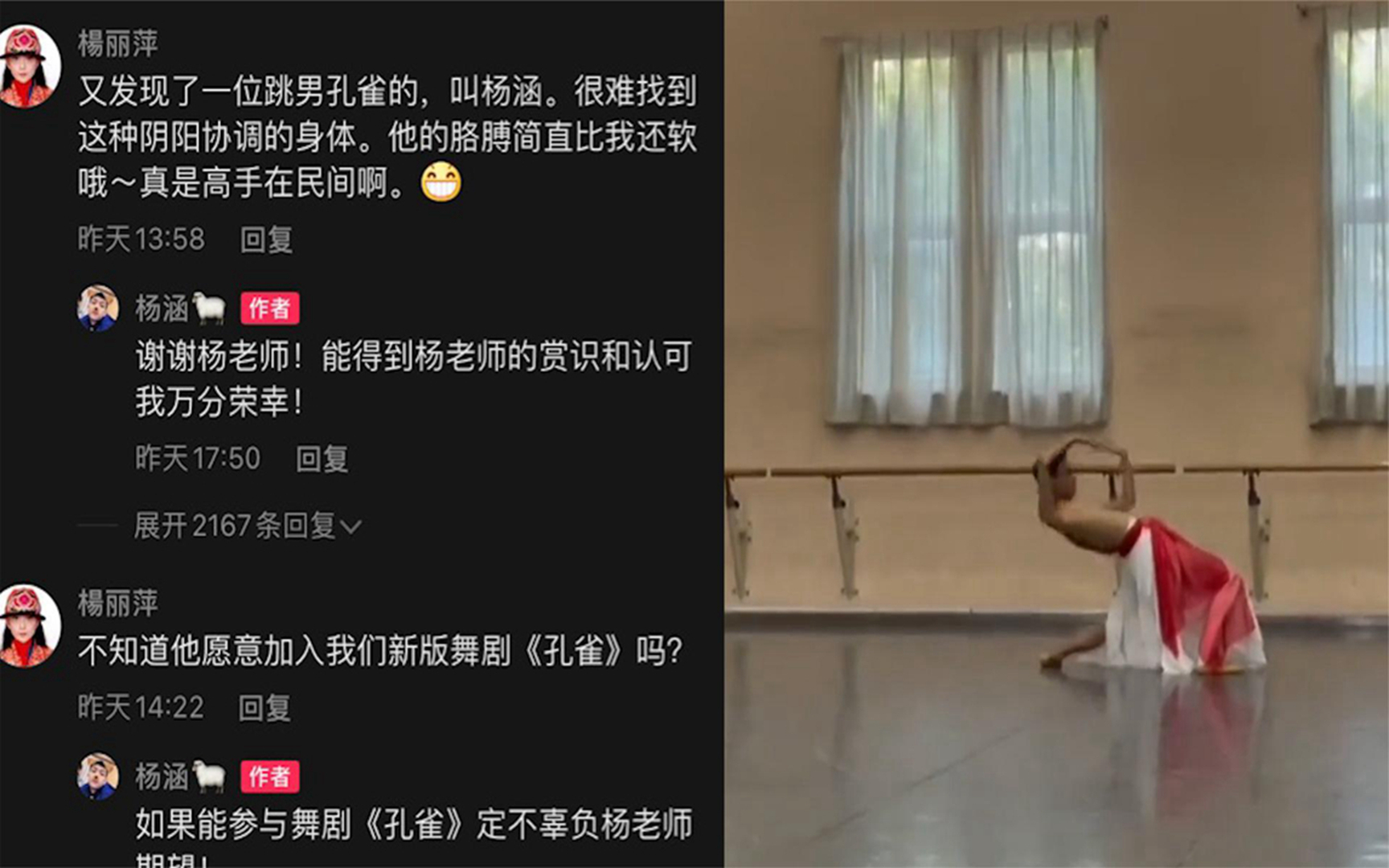 男生跳舞视频被杨丽萍选中,连发两条评论难掩兴奋:他胳膊比我软