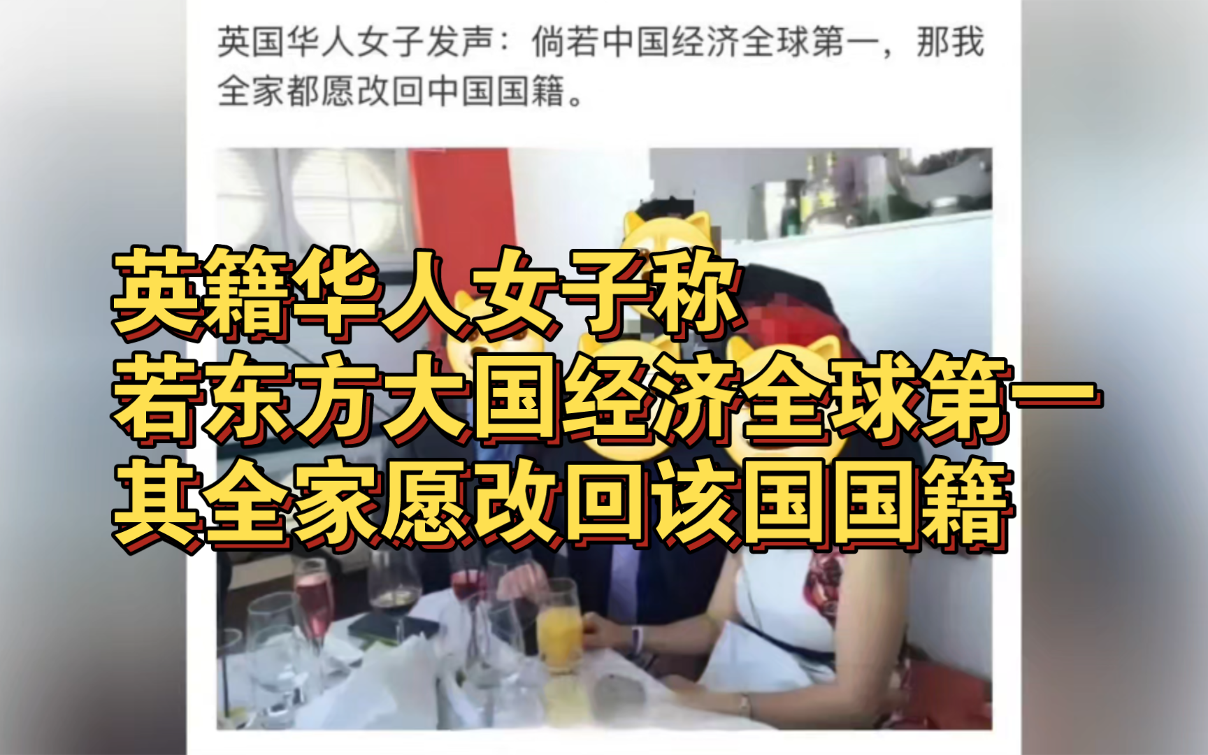 有英国华人女子称,倘若东方大国的经济成为全球第一,那她全家都愿意改回东方大国国籍。