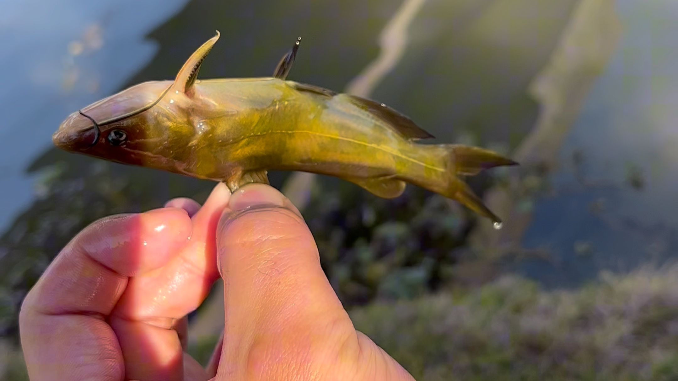 小伙子以外发现小河有这么大的鳜鱼