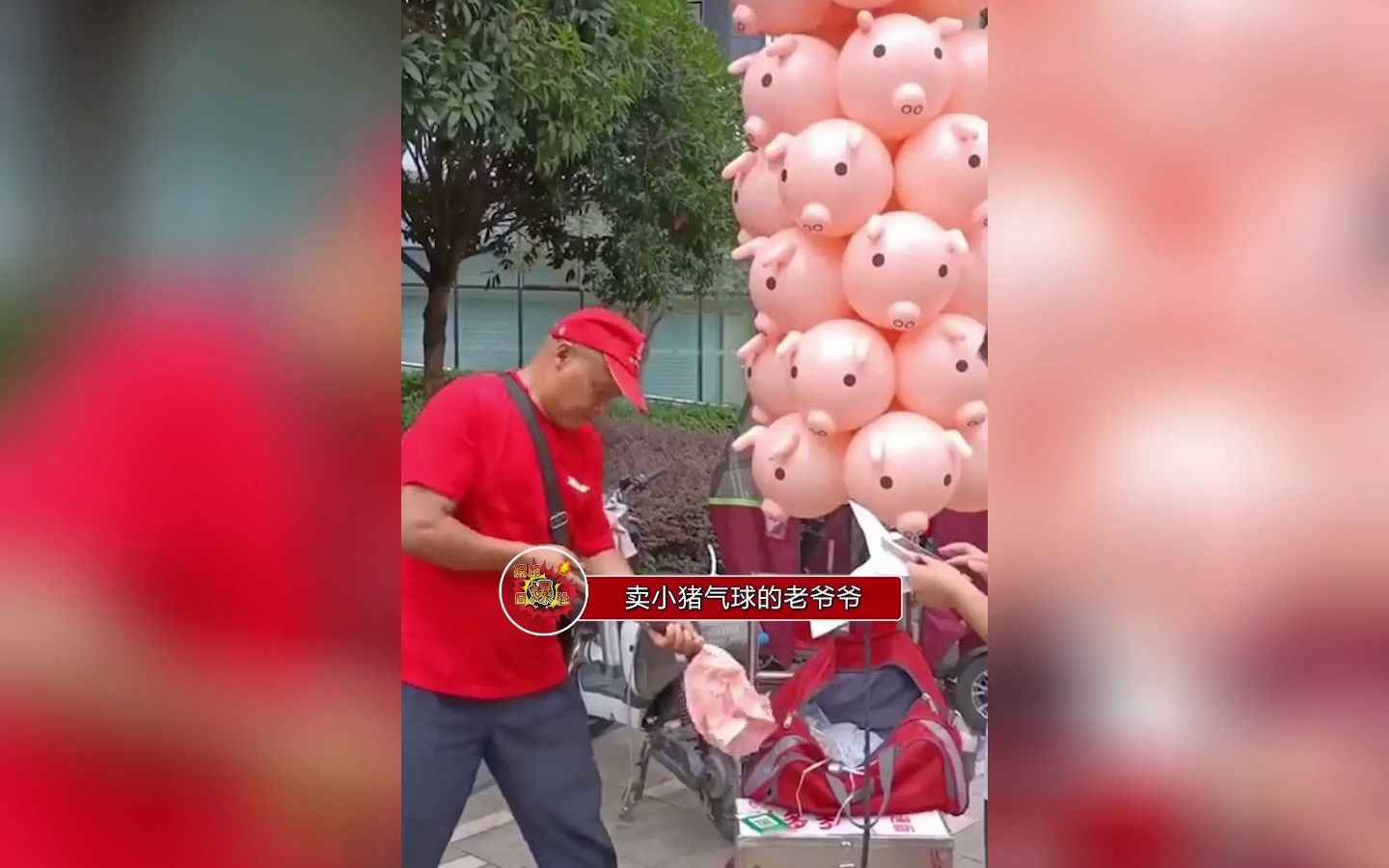 卖小猪气球的老爷爷,这么多人,爷爷打气快打秃噜皮了