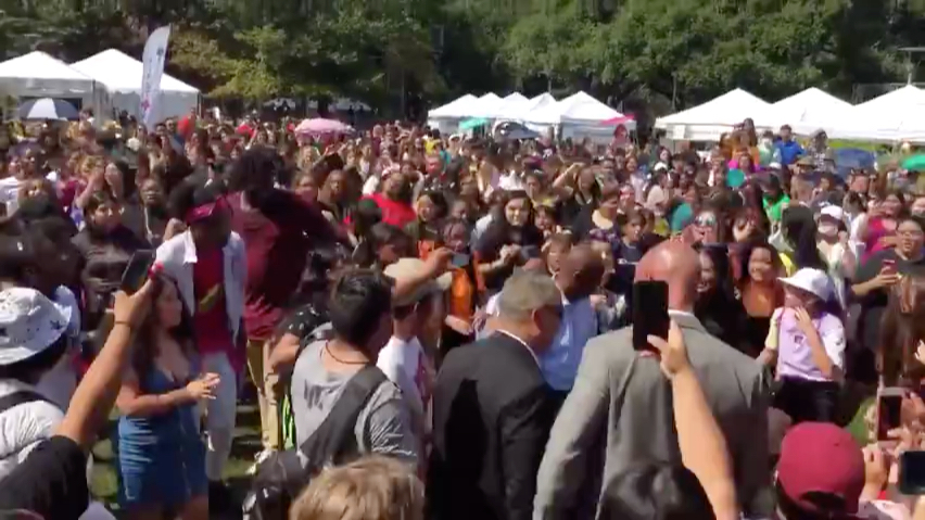 天呐太壮观了,在美国的韩国文化节上,所有人都加入了鸡汤面的舞蹈舞动起来,包括市长[给力][给力]