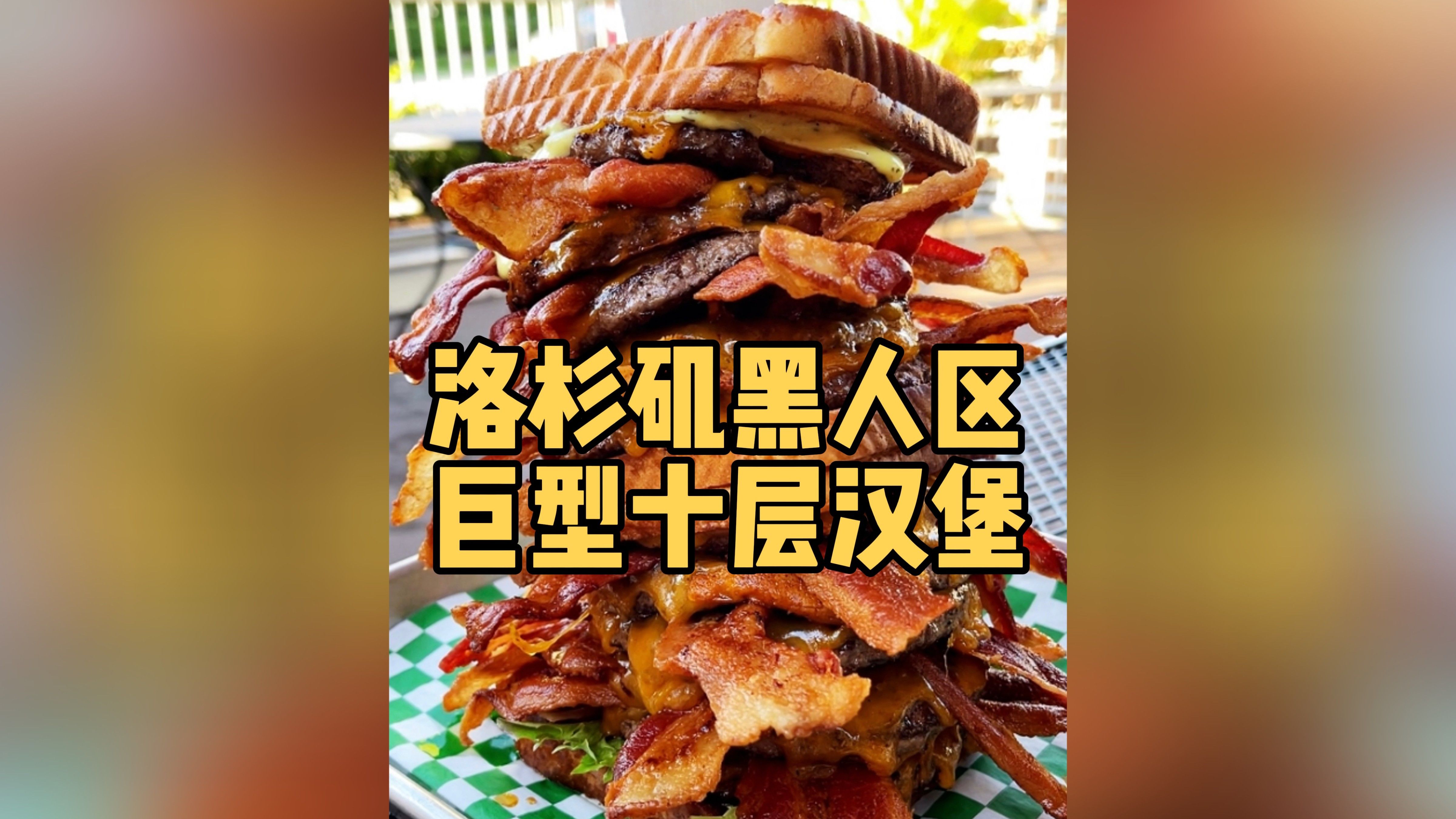今儿去打卡洛杉矶黑人区的巨型十层汉堡!四十五分钟吃完你敢来挑战吗!