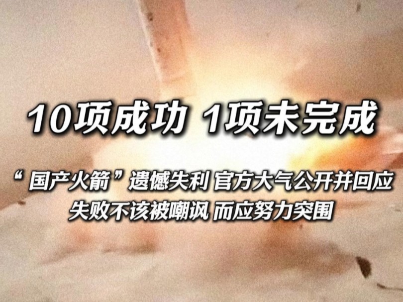 10项成功,1项未完成“国产火箭”遗憾失利,官方大气公开并回应失败不该被嘲讽,而应努力突围