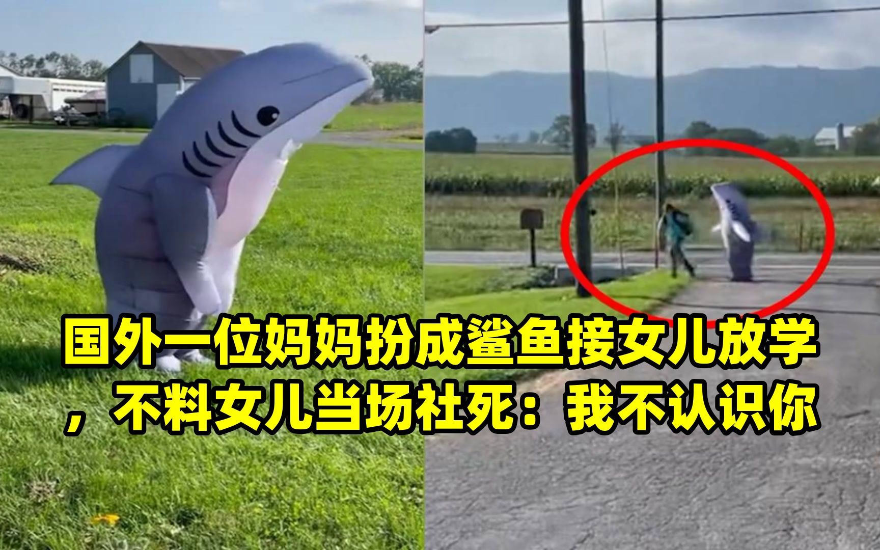 国外一位妈妈扮成鲨鱼接女儿放学,不料女儿当场社死:我不认识你