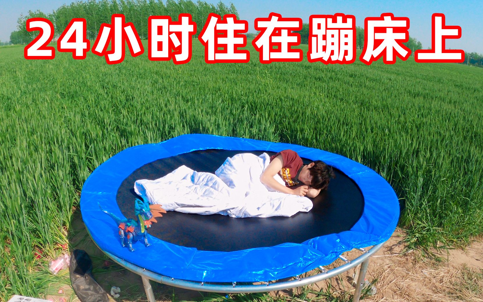 挑战24小时不用手机住在蹦床上,半夜手脚被冻僵了