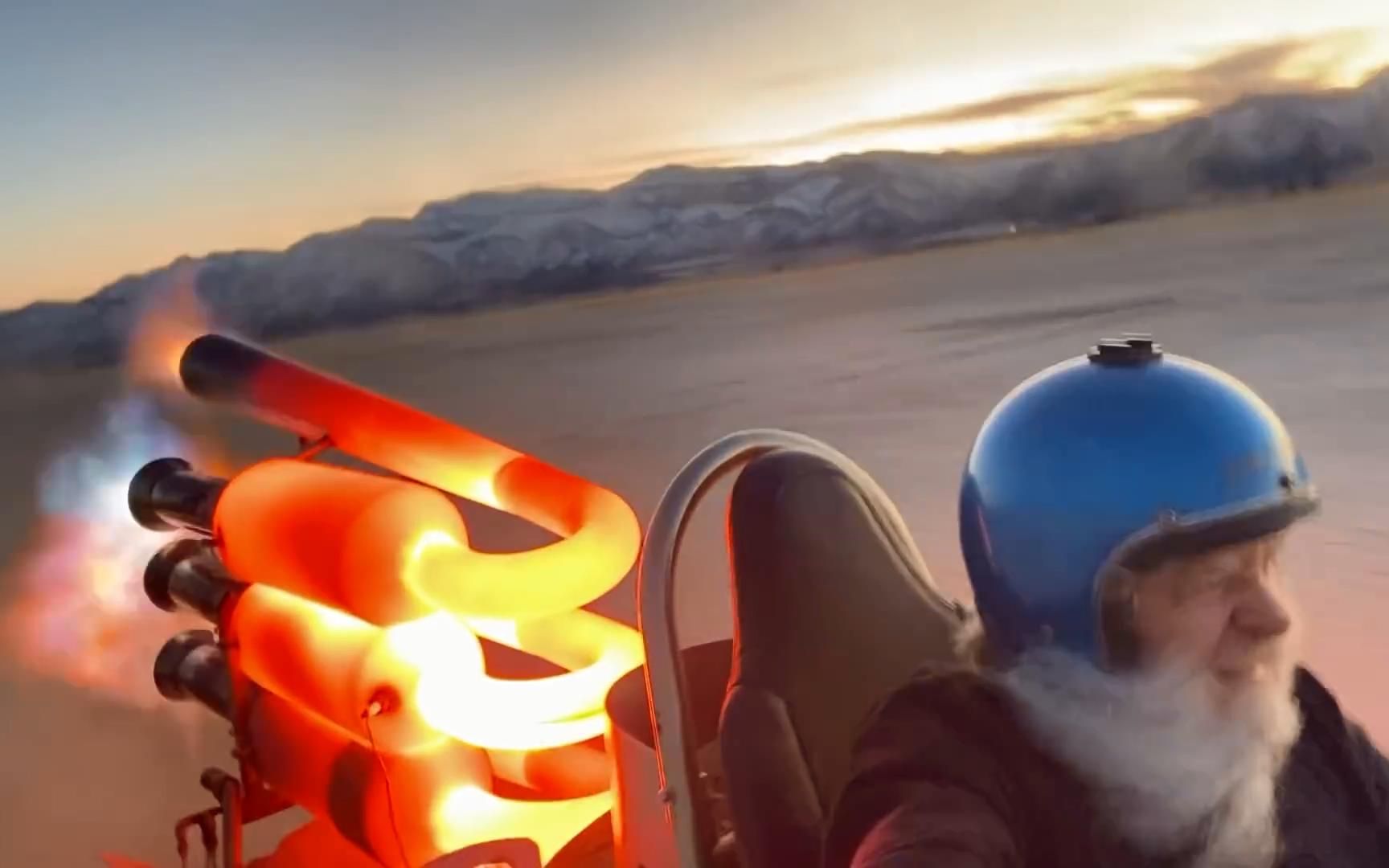 老爷子开着自己改造的喷射式卡丁车,一路风风火火...这个推背感没谁了!