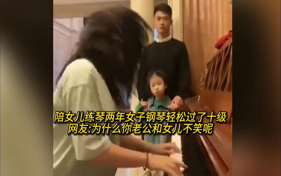 陪女儿练琴两年女子钢琴轻松过了十级网友-为什么你老公和女儿不笑呢