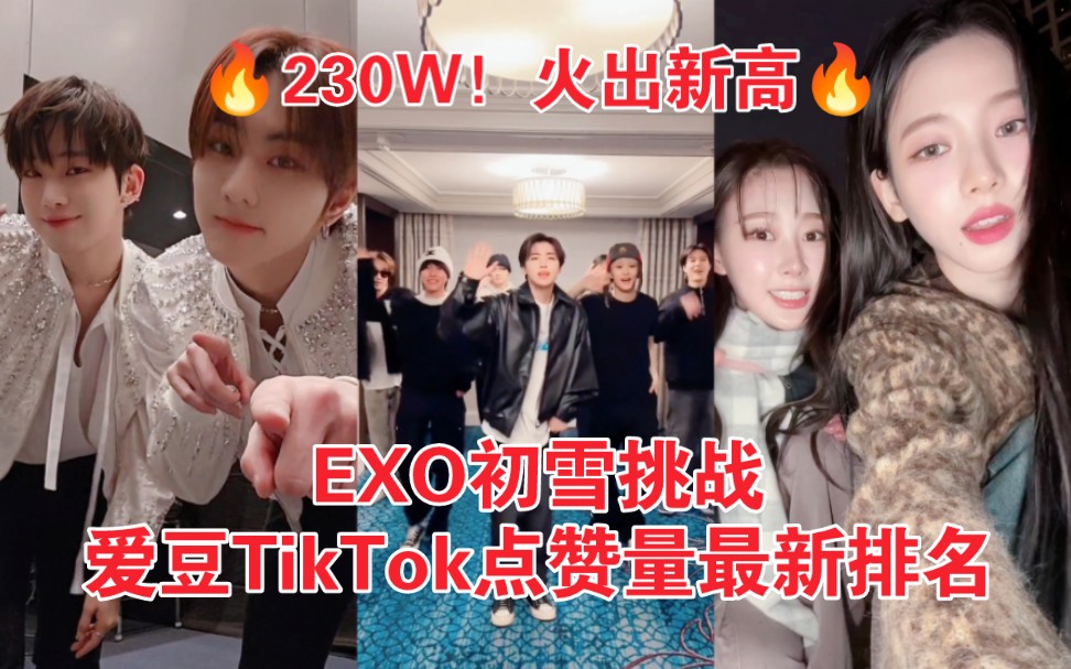 一下雪就飚升!划恐怖330W赞!涨幅800W!芙播放破千万!EXO后辈毛划吒椅开大会 初雪一定会有奇迹 EXO初雪挑战Tiktok点赞量TOP17排名