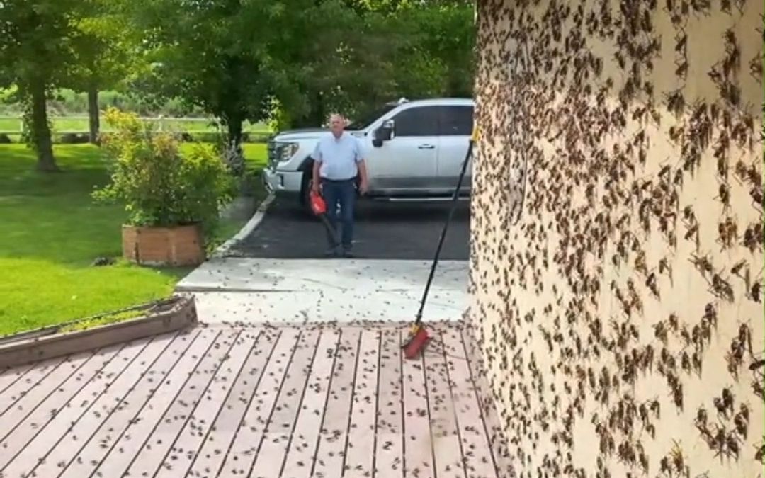 居住在美国内华达州的网友,拍下了自己房子被“树螽”占领的场景,密恐慎入!