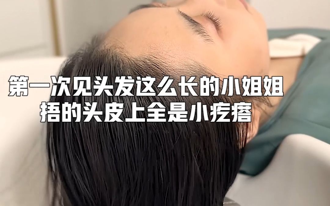 第一次见头发这么长的小姐姐,捂得头上全是小油点