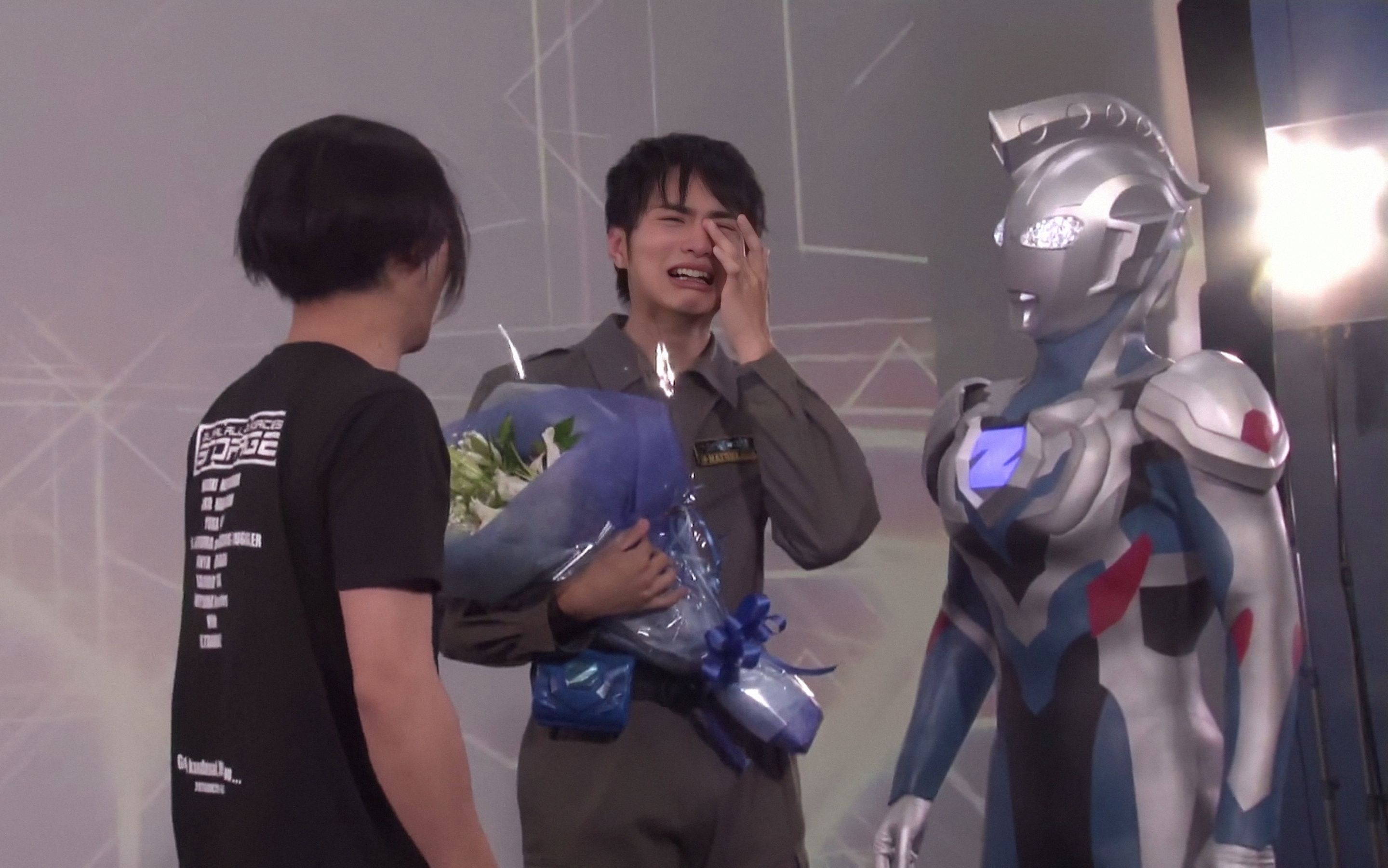 遥辉拍完泽塔奥特曼最后一个镜头后感动的哭了,伽古拉上前安慰!