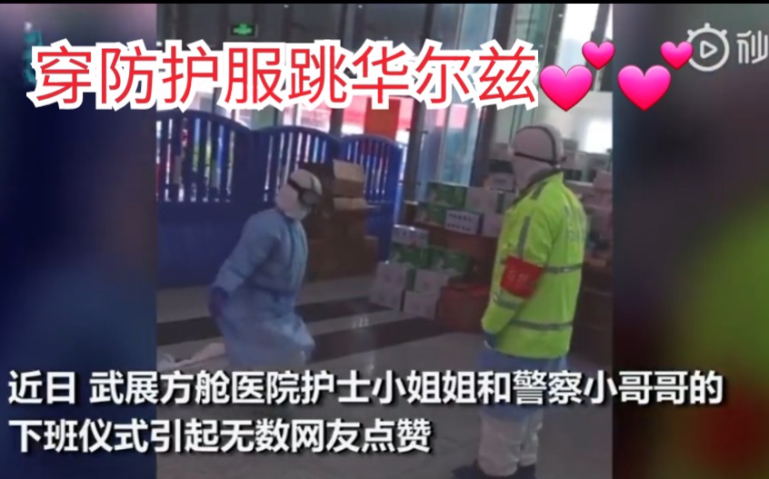 方舱医院护士与警察穿防护服跳华尔兹