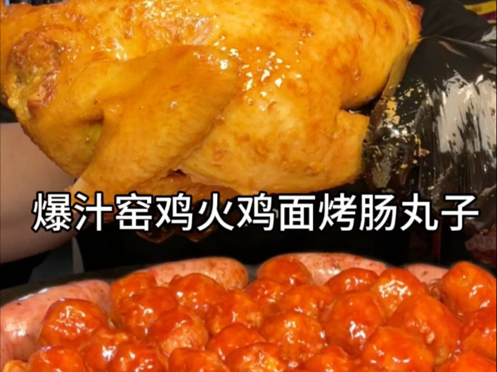深夜爸妈熟睡狂炫爆汁窑鸡火鸡面烤肠丸子