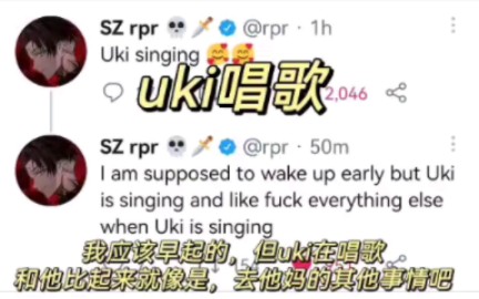 uki/rpr/fulgur 推特 大家uki唱歌的反应