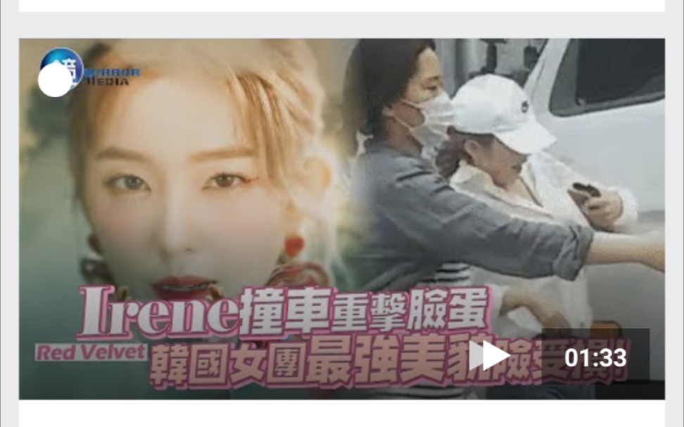 Irene撞车重击脸蛋,韩国女团最強美貌险受损!